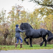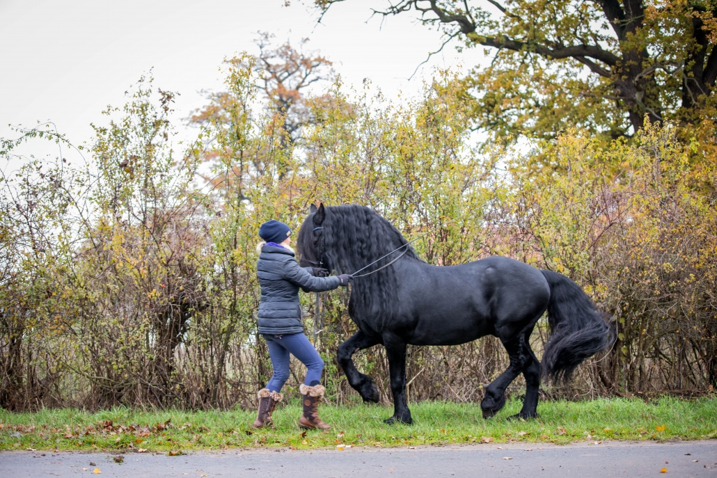 Die Arbeit an der Hand im Gelände – Aufwärmtraining für Pferd und Reiter. Auch wenn es kalt und trüb ist, die gemeinsame Arbeit macht einfach Spaß, ist ein guter Vertrauensbeweis und festigt das Verhältnis mit dem Partner Pferd. Fotos: Miriam Knospe